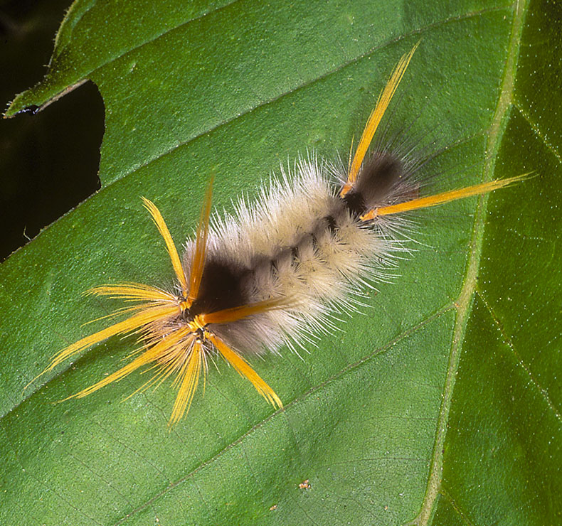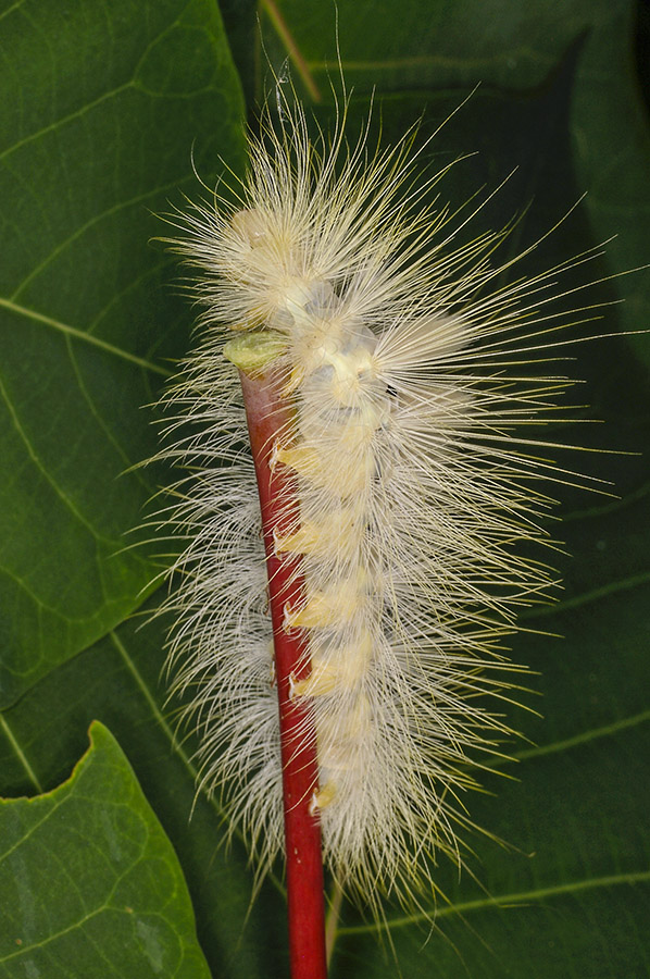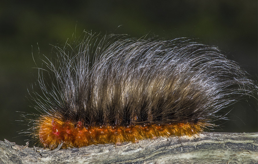 Hairy caterpillars are a common adaptation, especially among the moths. Caterpillars spend all day every day feeding at gargantuan rates, and have tiny eyes which dont see much beyond the leaf, except for a ‘shadow above me’ reflex that may help them escape a predator. Some hairless caterpillars just roll off the leaf, but like spiders, they attach a silk safety line to find their way back after danger has passed. Others are so hairy that they may miss this warning, but if their hairs are poisonous, it matters less. And then there is the next step.