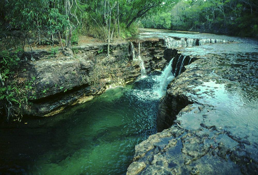 The xmas beetle above is real. Honest. It is one of several species in this Scarab group in the world, that for some wonderfully random mutation reason, looks like gold – better than gold really. It moves. It is Anoplognathus aereus, and lives in steamy forests of far N QLD, especially Cape York. In the mid nineties I was lucky enough to have a two year research contract to study the insect fauna of Cape York. Every month a different entomologist from CSIRO would come up to Cairns, and we would drive up for 10 days or so, studying whatever group that person was a serious expert of. Heaven on a stick for an ento nut like me, learning volumes from each one, while having great adventures on the very eecky 4WD roads. While I am here, see two memory blob shots that show two aspects of the Cape. The waterfal is Elliot Falls, near the very top of Australia, and one of the few rainforest areas up there. Most of the Cape is open Eucalypt savannah woodland, and on the east coast, a lot is heath, like the picture with the 4 metre high termite skyscrapers.