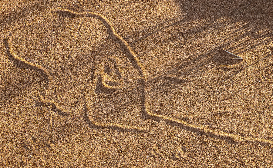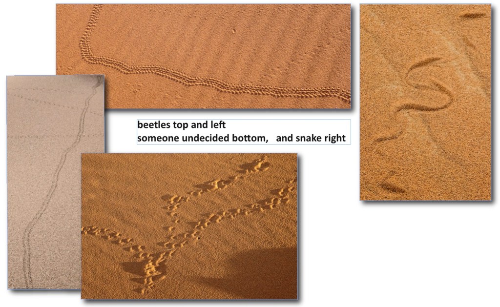 This almost rain-less desert, has shifting dunes which are reborn every morning with no human footprints, but oodles of footprints made by a surprisingly bio-diverse mob of critters.