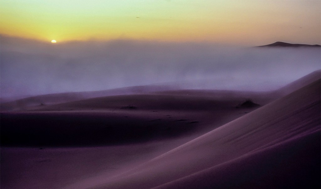 The secret of this desert’s fecund life, is fog. The dunes continue right into the Atlantic ocean on the west side of Africa. Here, where it meets the hot sand, it is very deep and very cold. Almost every night a fog builds up over the water and is pushed inland, tens of kilometres, carrying a lot of moisture. Below sequence shows the ‘beach’, where I tried to swim and froze bits of the bod. Getting to here is wild 4WD territory, no roads as such, and luckily the local ranger with years of experience drove his buggy at breakneck speed over the dunes, to stay above the soft sand. Next the OMG sunsets in the interior – colours not exaggerated – and then the sunrise in the same area showing the fog that passed through at night, boiling away in the sunrise.
