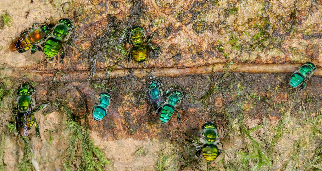 Now Mr Bee came from Germany with all sorts of exotic smelly bits. Esters, plant bits smells like eucalyptus, and other odours not known from this area. Dab a little on moss, or a log, and the boys go mad, coming down from the heights to vie for the best smells. Thus we studied and photographed 9 species of these wonders, and smiled broadly at the end of each day. The rest of the time there time was a treasure trove too, for another bloggi bit, later…