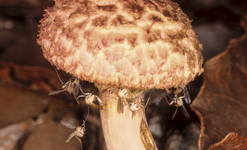 Not time for the bitey ones yet. One more story about harmless, but delirious ones, called Fungus gnats. The main Family is Mycetophilidae, which has ordinary looking midge type flies that feed on fungi as larvae. Below are many, attracted to this mushroom in Borneo.