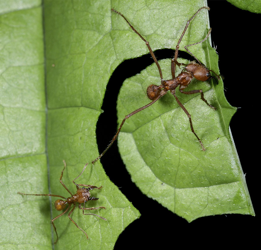 The most famous cutters of leaves are the stars of many a fabulous documentary, the leafcutter ants of Central and South America.