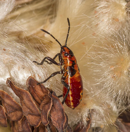 So by now you may be wandering why this tragic insect botherer is getting so poetic over a plant. Well, besides it deserving poetic ooooohs and aahhhs, it has insects on it – of course. There is nowhere that insects have not adapted to, if a food source exists. Below are two very similar looking bugs. On the left a vego one sucking the innards from the ‘seed’ pods, and in the middle, a carnivore assassin bug – mimicking it, and feeding on it, at leasure.