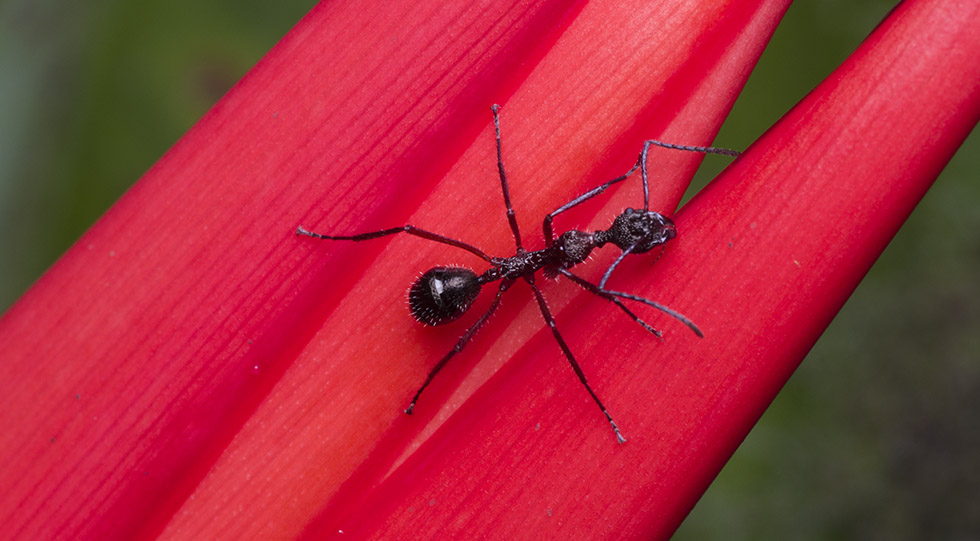 followed by ant obliging by putting on a great backdrop show of a Heliconia flower…