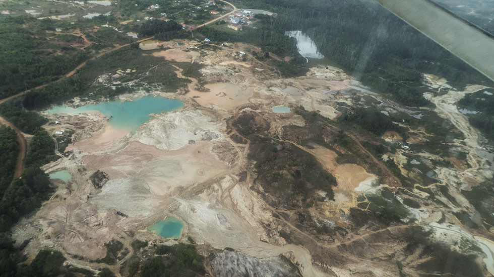 There is devil in the detail of course – humans doing very messy gold and diamond mining, not in one big hole like mining companies, but by strip mining the landscape slowly by hand. This destruction combined with serious poisoning by using mercury to separate the gold, results in big blobs of these hellish wastelands.