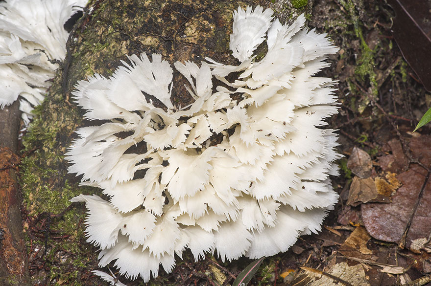 Lets talk about leaves. Rainforests have the same deep green hued leaves on all the ground level plants. It makes ID of these saplings very hard as nothing stands out. But when it is time to invest in new leaves, the babies have all manner of stand out colours from yellow to pink to – well it is first time I have a seen a white leaf too…