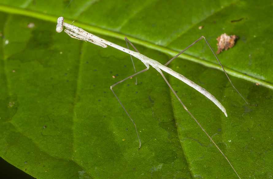 On the insect side, the skinniest (and whitest) parying mantis pranced about