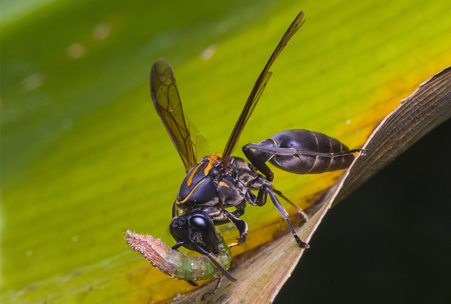 and a bit of the old tooth and claw story, here a paper wasp mushing a poor caterpillar that will be taken back to the nest to feed the babies