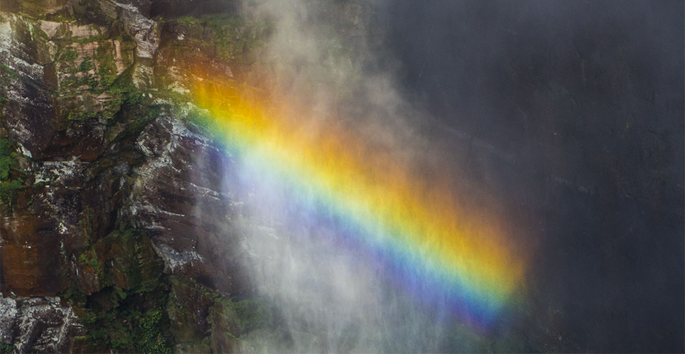 Here is where the flat country rises into high country, and here is where the, claimed, world’s tallest single drop waterfall does its thing – the Kaieteur Falls, all 226 metres. The full span only visible from the air or by climbing down to the valley. Pretty shmick, and it makes a rainbow show across the immense spray clouds.