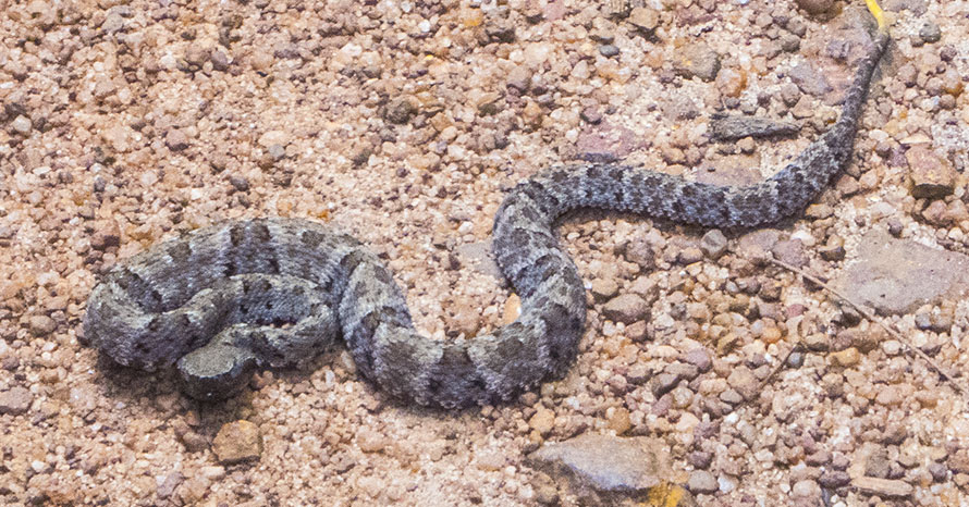 Next morning on the road a cute baby snake with attitude stood its ground and lashed out – and it turns out it was the legendary fur-de-lance, one of the deadliest snakes on our planet.