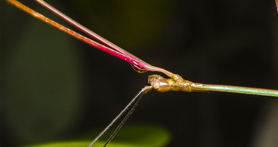First day ended with a night walk, seeing the other shift of local critters. Many froggies, stick insects and crickets among them. See a close up of a very skinny and nicely hued stick insect