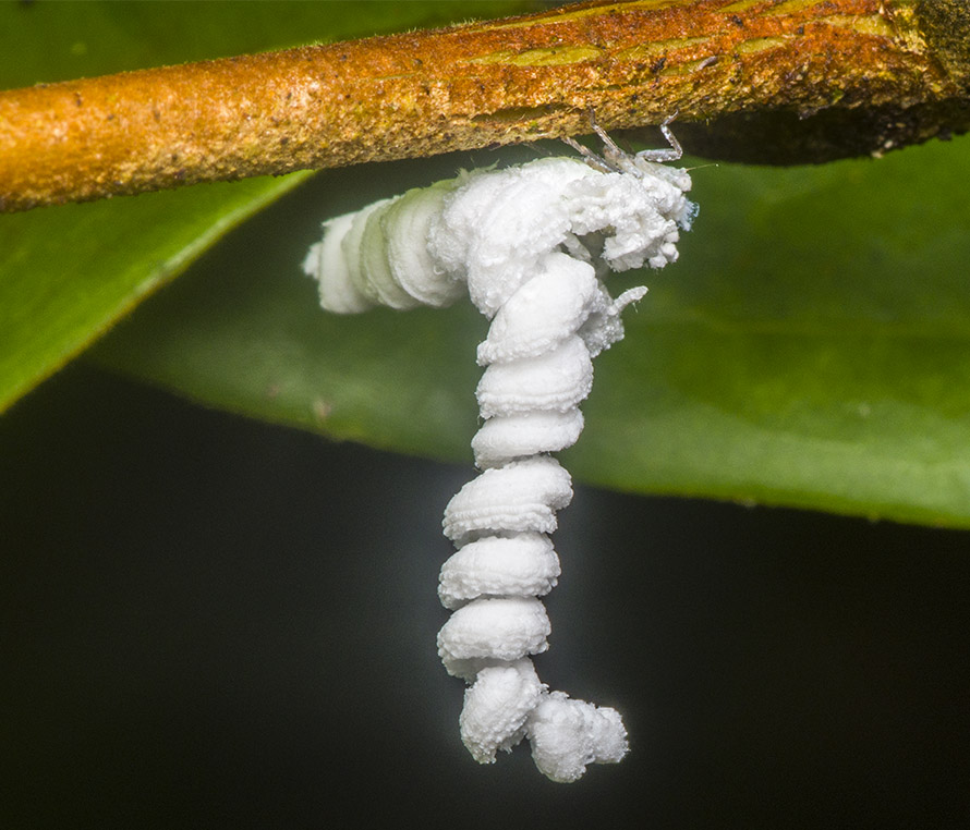 but if you prefer the strange to the beautiful, you cant go past the next candidate. First of all find its little feet – it is upside down so look at the branch above the weirdness. It’s body is only about 10% of this madness, and all the rest is wax it has created from plant juices it drinks all day. Predators do not know what the hell to make of this cute mess. It is probably a nymph of a Flatid hopper