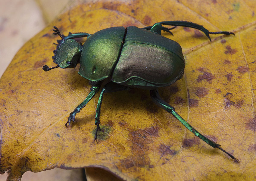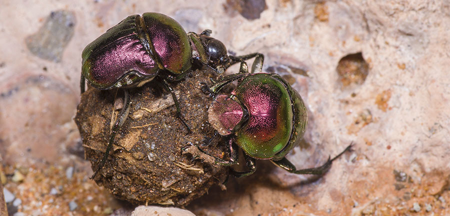 The majority of dung beetles are either black or dark brown. But in Africa and South America, where the rules of boringness do not apply, there are some fabulous ones: