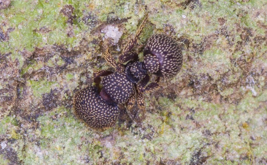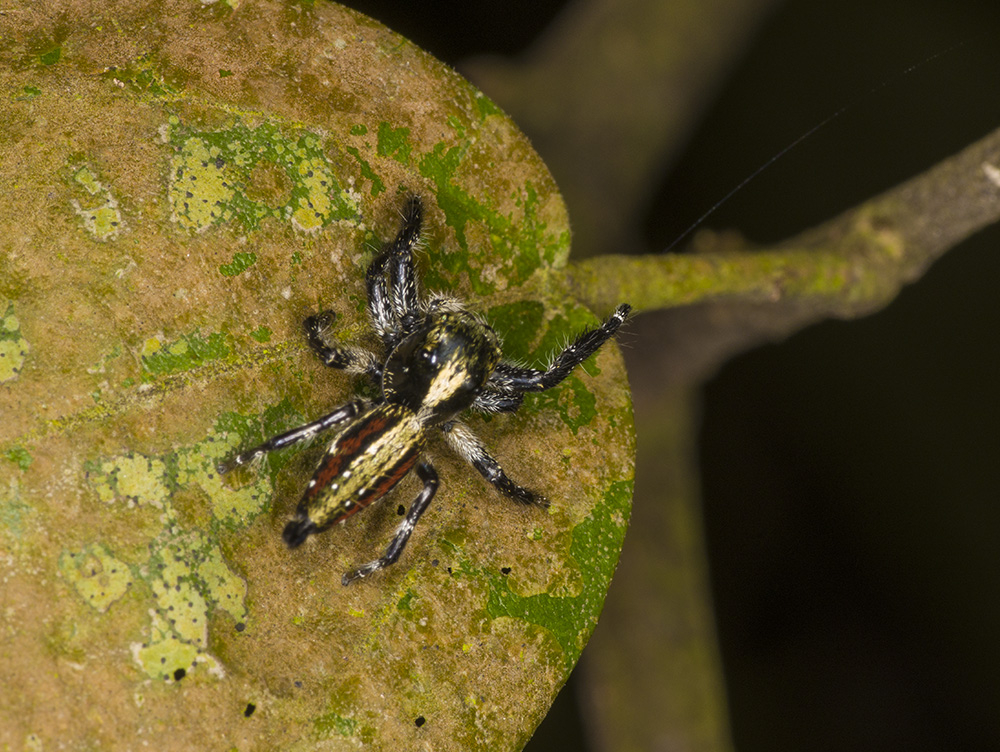 The above species, in the genus Lepanus, is eeeny weeny. Only about 4mm. These species specialise in bird poo. Hang about on horizontal leaves that birds paint with splats. A huge resource for such tiny creatures.