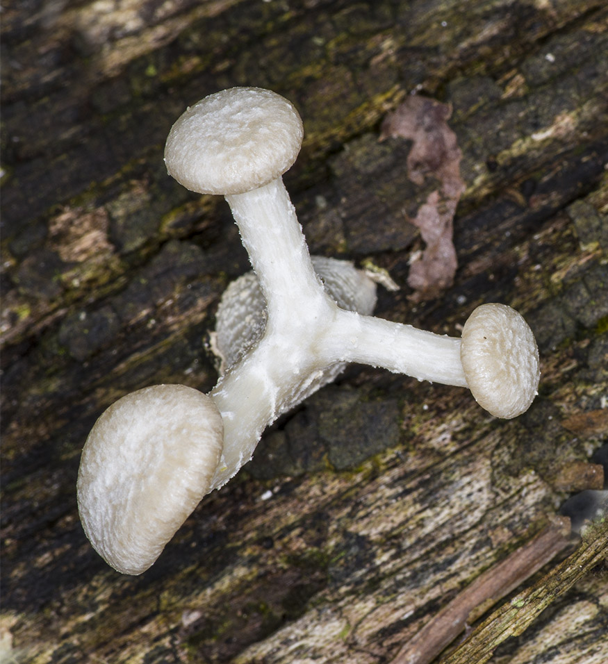 This nicely patterned 8 legs is a spitting spider (there is a $500 fine for spitting in Singapore), so it has to be circumspect. It hides under broad fern leaves and hunts insects and other spiders by ‘spitting’ blobs of sticky web at them, until they get stuck, and can be gobbled. Below is a fun surprise. I spend a lot of time in wet forests all over the world, and so get to see all manner of weird and wonderful funguses. Colours and shapes often surprise, but symmetry is always as expected, until today – this tri-shape, from a single stalk, is very new to me.