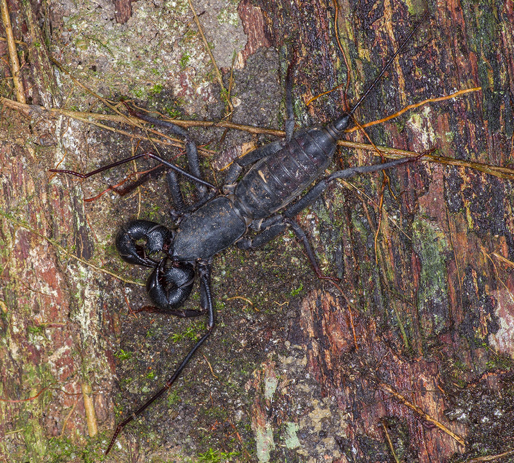 The above is a whip scorpion. Note the cute extra muscular grabbing arms and generally unkind demeanor. Below is a scorpion mother with all her babies going for a ride, so sweet, oooooohhhhh…..