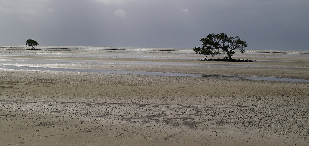 Above are outliers edging forward in the islands off the coast of Belize. Below is a lonely outlier mangrove tree, in the famous Cape Trubulation area, showing the huge tidal difference it lives with every day.