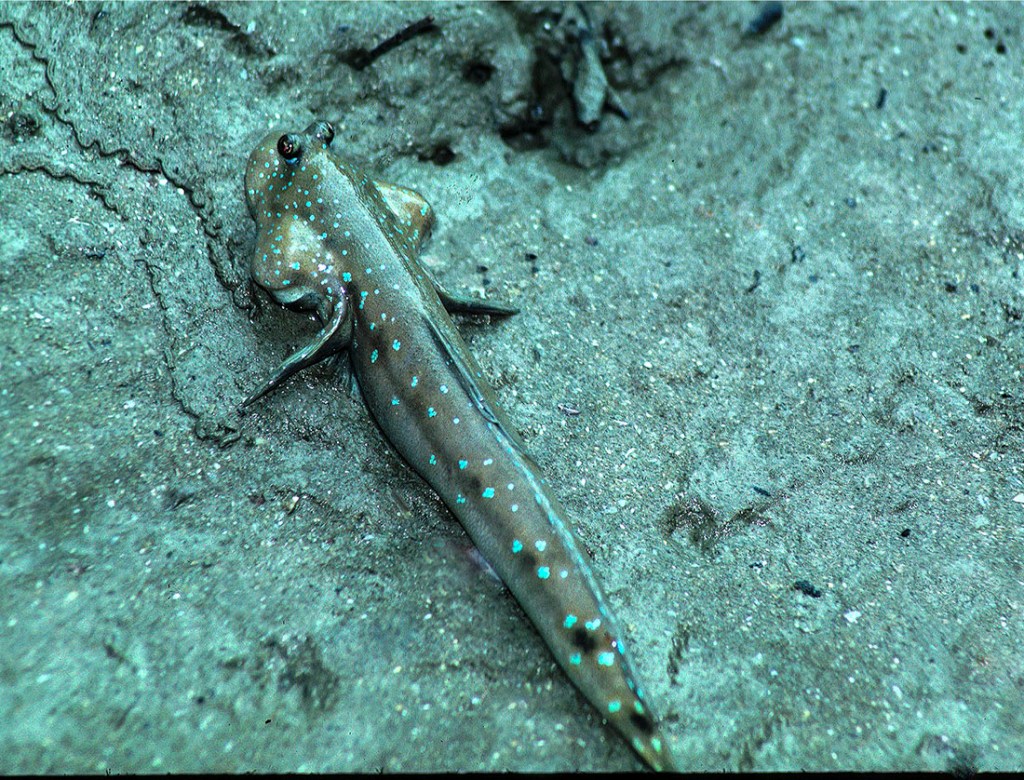 Crabs actually have 10 proper legs, and lots of other weird appendages like claws and stuff, so they are legal in a six-legs-good site. Fish have more than two fins, not sure but I tink maybe more than 6, so I hope you will forgive their intrusion here on account of how cute the fellers below are. Mangroves are famous for ‘walking’ fish. They not only walk but hop, skip and jump, outside the water, while seeing all around them with their great booogly eyes. They be the mud skippers.