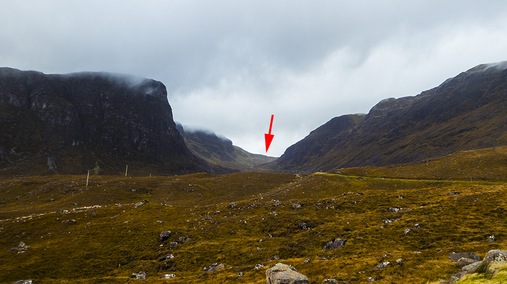 Another day, another pottering about. This time to the Applecross area, a peninsula with the village accessible by crossing mountains what do not look like good road material. See looking up to the crest from the start of this fabled road (arrow), and then looking back down from the crest. Its one of the great roads, like The Great Ocean Road, only without the sea, and with mountains, and zigzags, and single lane scary track… and….