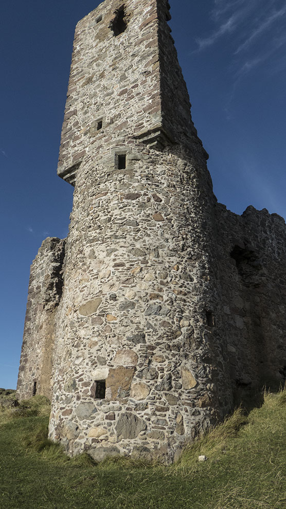 and in dem landscape there be a cute castle – ruin of course – always more rustic and moody. See the cute way a later Laird added a square tower over the round tower.
