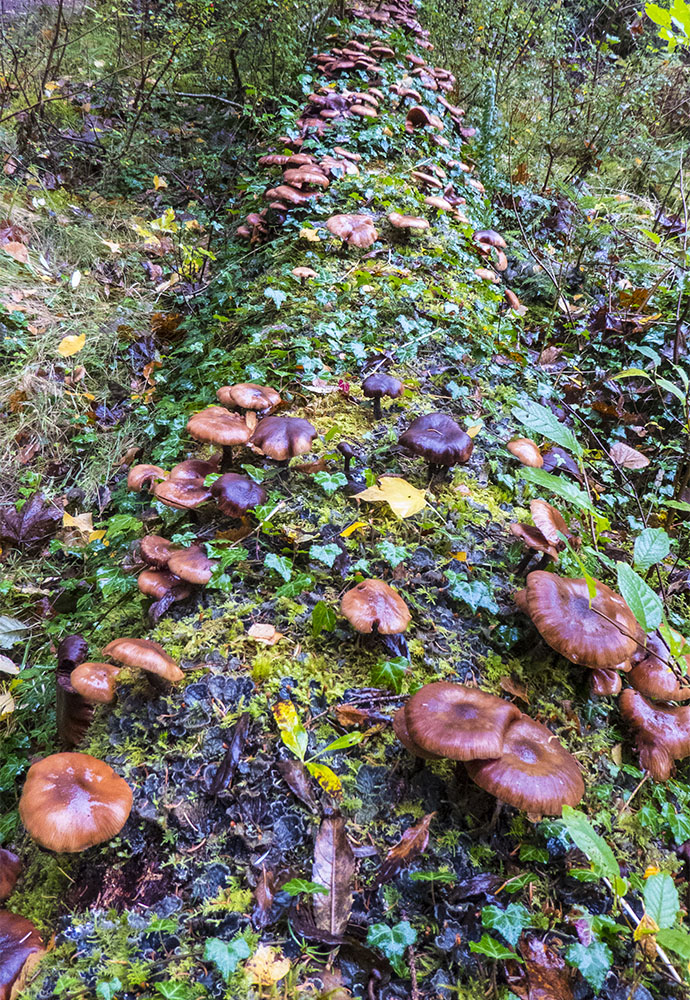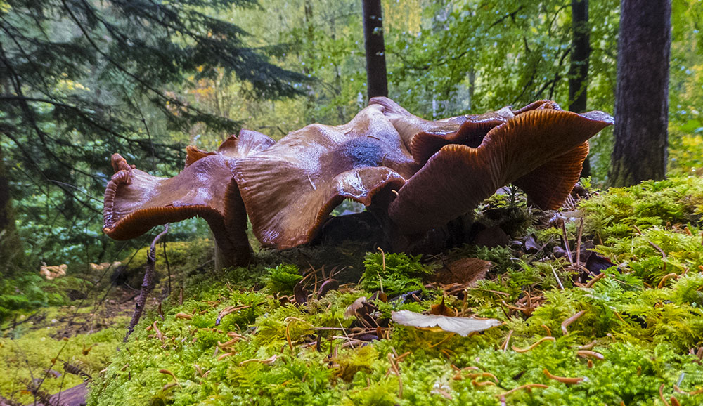 Giant sequoia trees next to cedars of Lebanon and all sorts. Among this mossy world is also the kingdom of the fungi. Right season for their abundance…