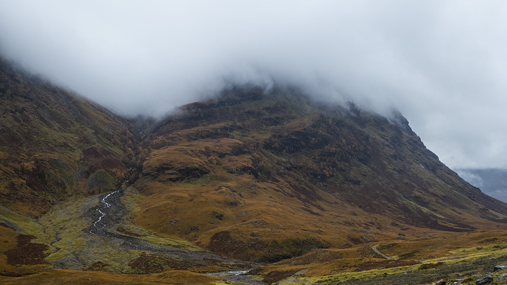 Arrived on Isle of Skye just in time for a serious ferocious storm, nicely named Storm Amy. 160km per hour winds did all manner of unkind damage. So it took the yukky weather from the Atlantic a few days to pass. But before I forget, to get to the north, you pass through a very majestic and tragic valley called Glencoe. The hills have very deep and meaningful character, and always present interesting moods (without being young and pointy), lo and behold