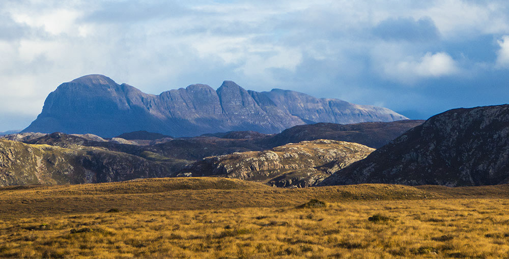 After all dem trees its time for a bit more of locale. Here N of Ullapool, there are grand vistas of ancient granite mountains. See this view first…