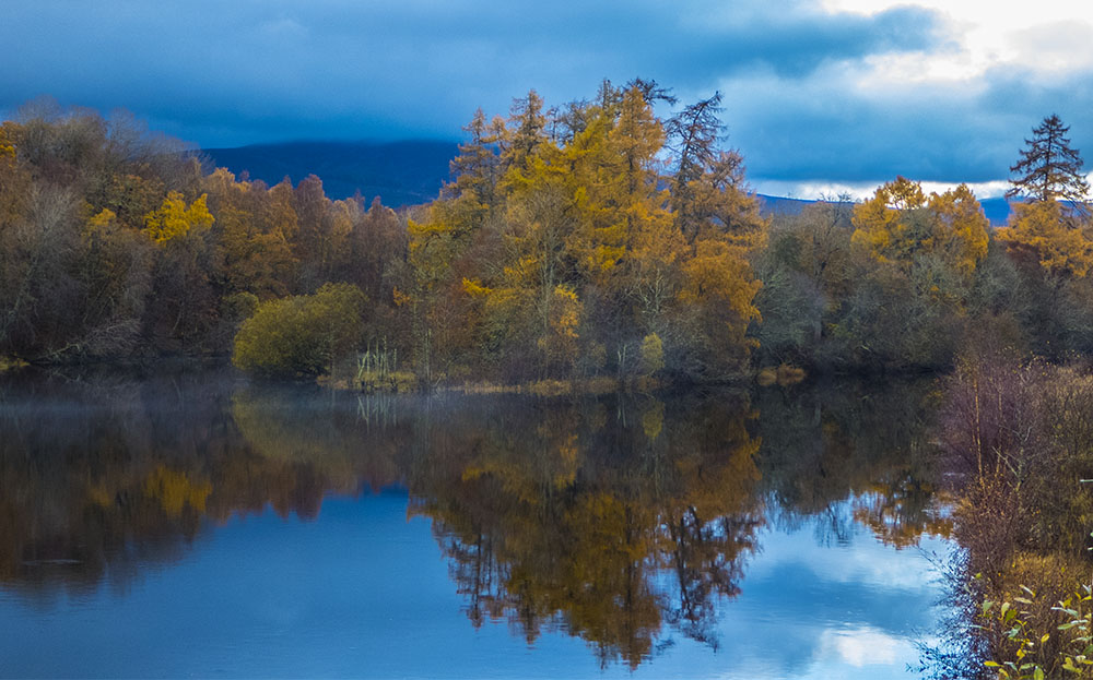 Scotland waited to the end to turn on a show fantastique. There are sevaral little lochs in the area around Aviemore, with different patches of old forest, including pre industrial ancient trees. On the last day, I visited the Loch Insh. It was a grey day, but towards sunset, the winds dropped and first a mist formed, and later reflections made their appearance, and